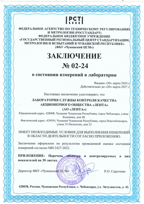 ЗАКЛЮЧЕНИЕ Nº 02-24 о состоянии измерений в лаборатории
