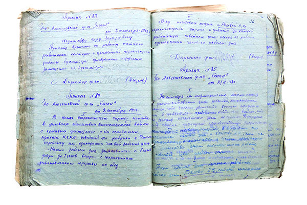 директора плетельной фабрики «Басон» т. Курчавов приказывает: «... Лучших возчиков, занятых по вывозке лесоматериалов и дров для фабрики, продолжающих работу с начала организации ф-ки и до настоящего времени – Лазарева А., колхоз им. Ворошилова; Амлеева М., колхоз им. Ворошилова; Иванову Ф., колхоз им. Кирова – премировать каждого меховой