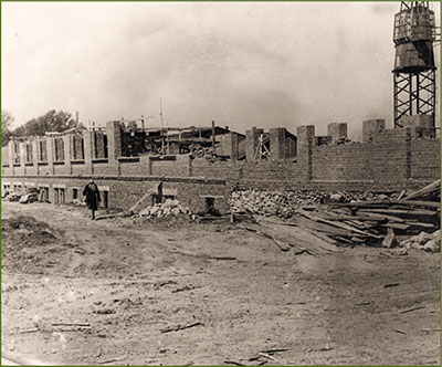 За четыре года пребывания под дождями, снегом, льдом, заморозками и оттепелями поверхностный слой бутового фундамента пришёл местами в полную негодность. В целях быстрейшего начала строительства коллектив сам взялся за его расчистку. Ветераны фабрики рассказывают.