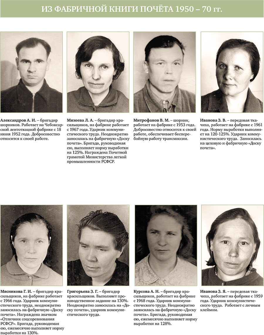 и вовсе станет крупнейшим красильно-отделочным цехом в текстильно-галантерейной индустрии СССР. Спрашивается, за счёт чего?.. Как видно из рассказанного, прежде всего за счёт трудолюбия чебоксарских ткачей, за счёт их новаторства и готовности «вызывать огонь на себя».